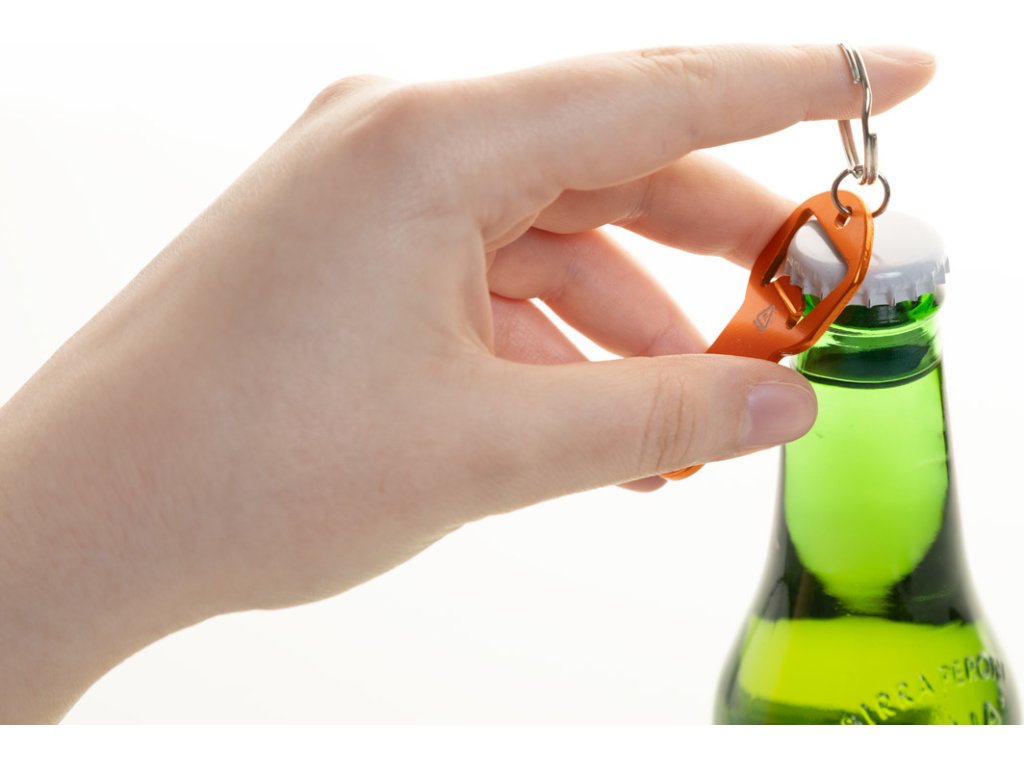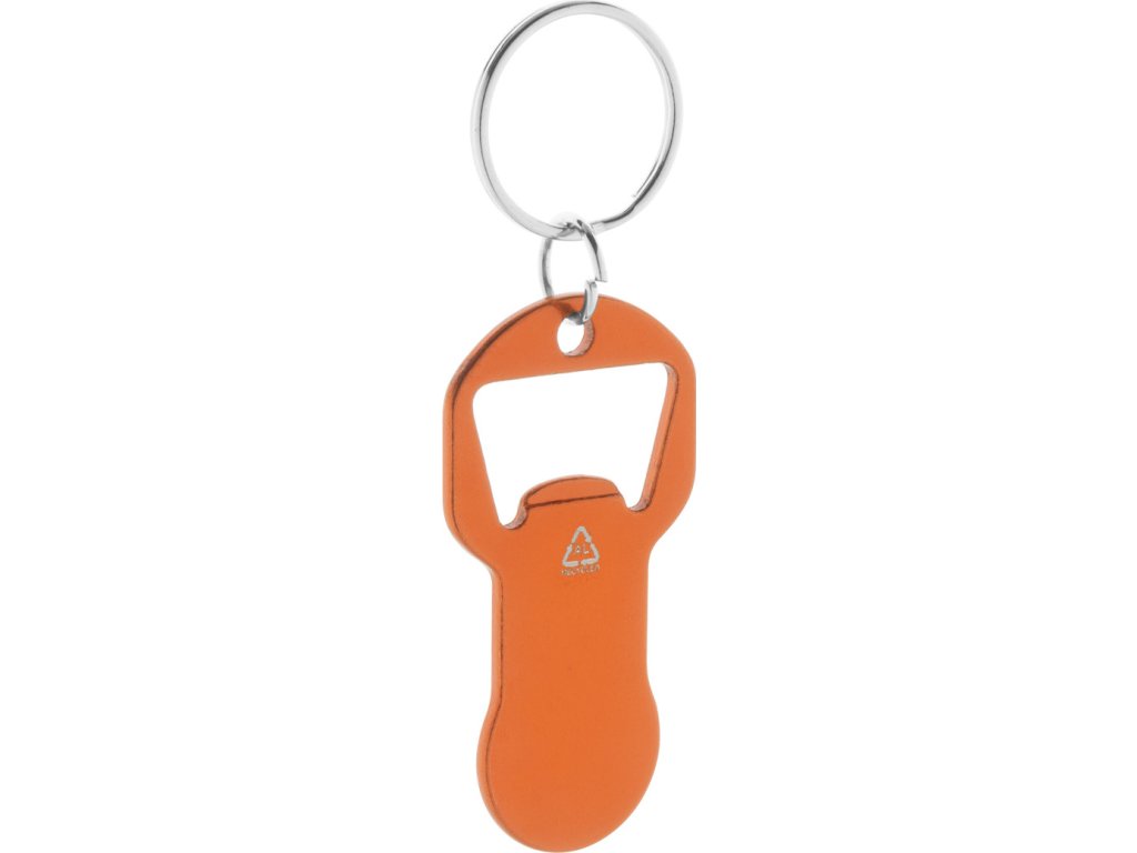 Přívěšek na klíče s otvírákem na láhve z recyklovaného hliníku s žetonem do nákupního vozíku.