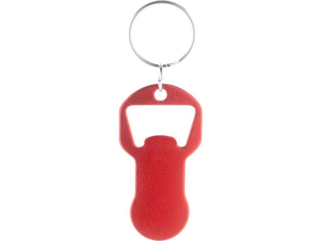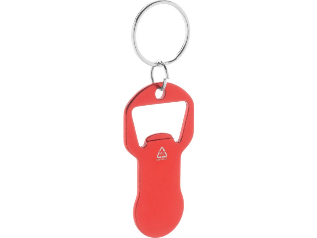 Přívěšek na klíče s otvírákem na láhve z recyklovaného hliníku s žetonem do nákupního vozíku.