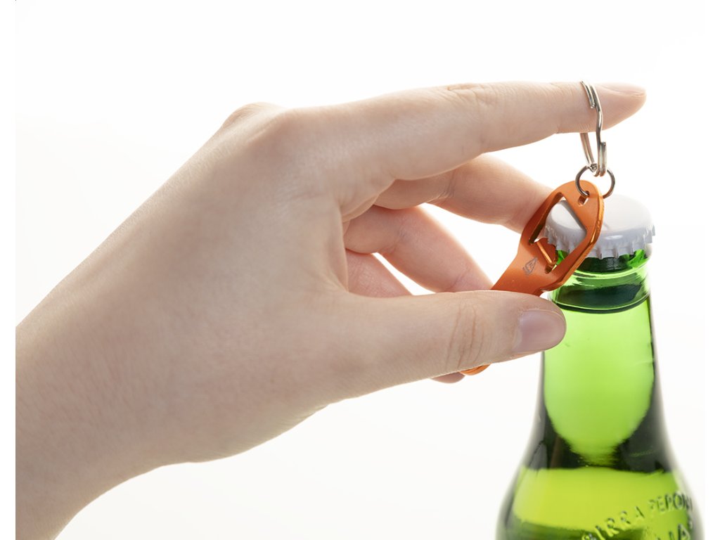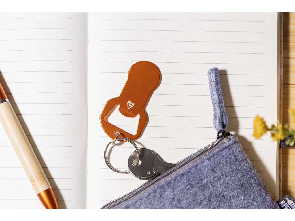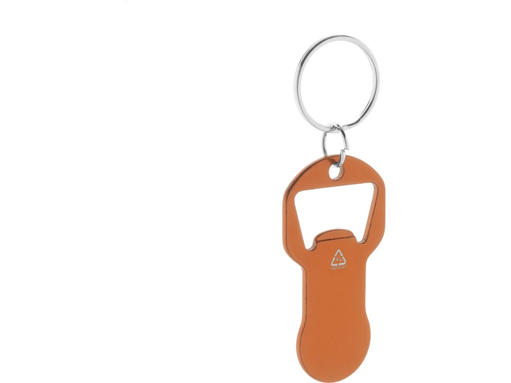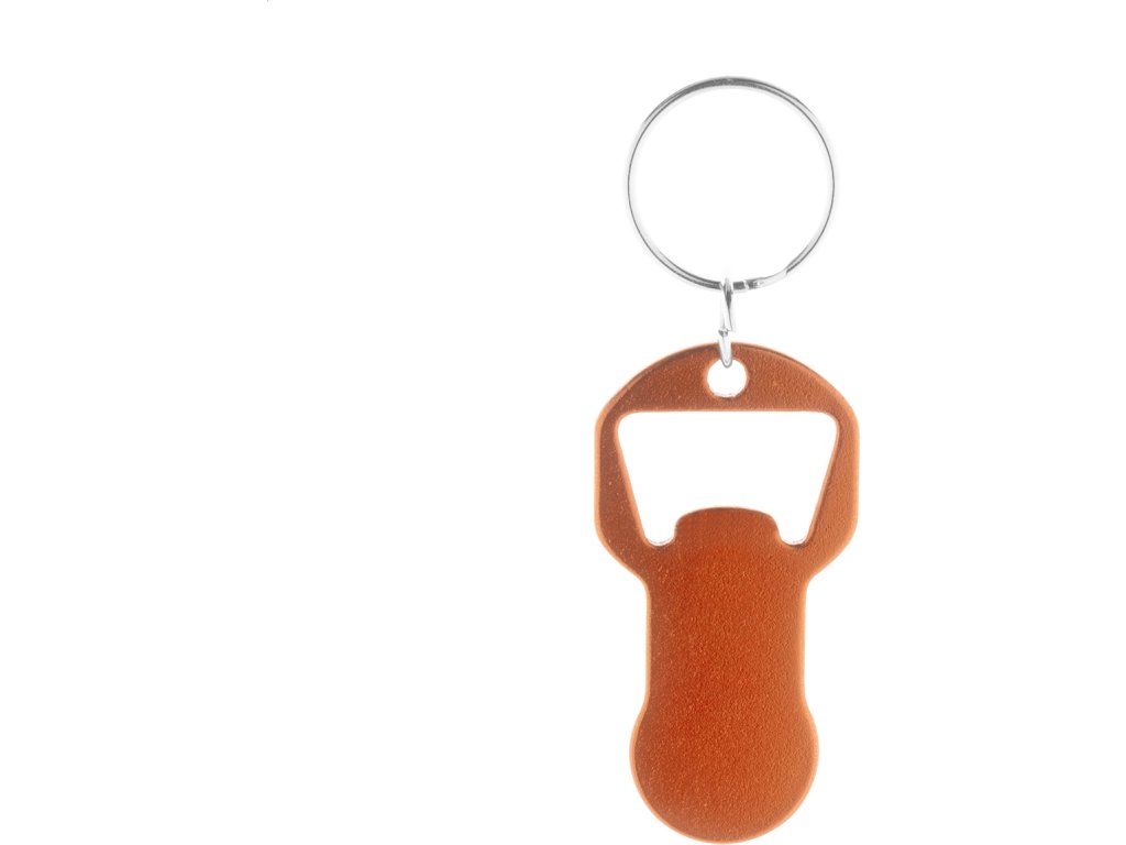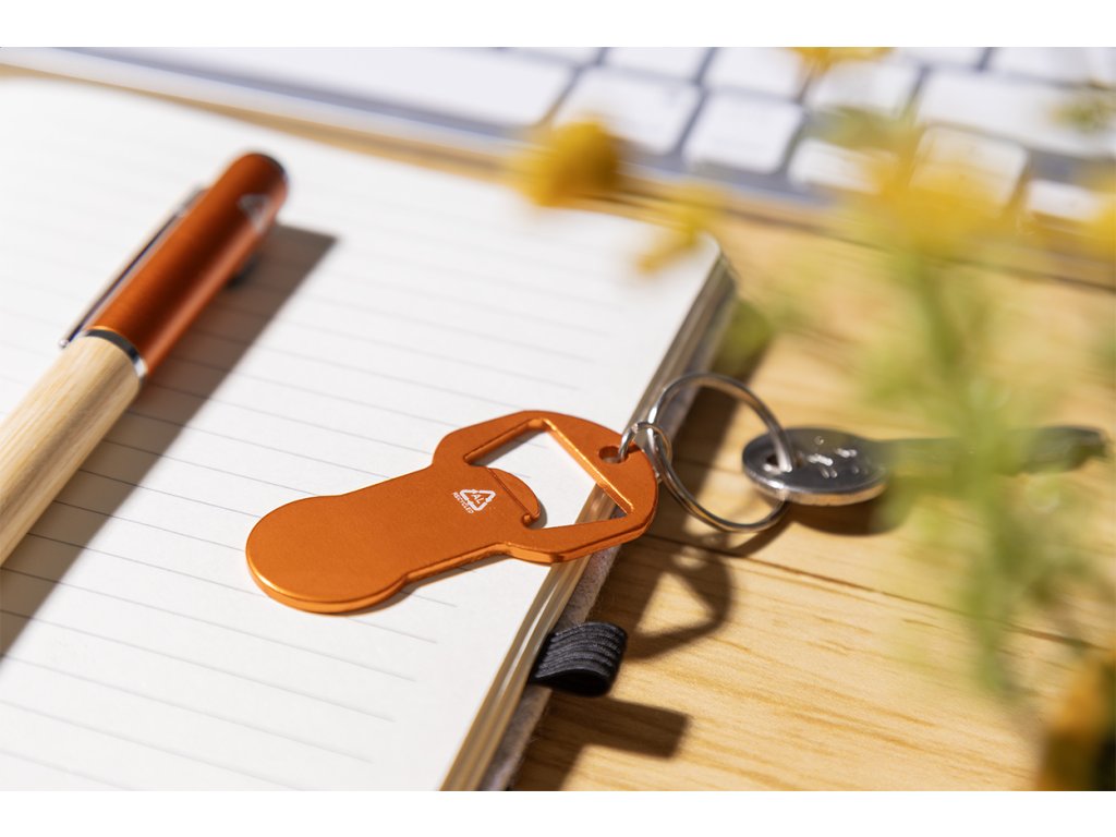 Přívěšek na klíče s otvírákem na láhve z recyklovaného hliníku s žetonem do nákupního vozíku.