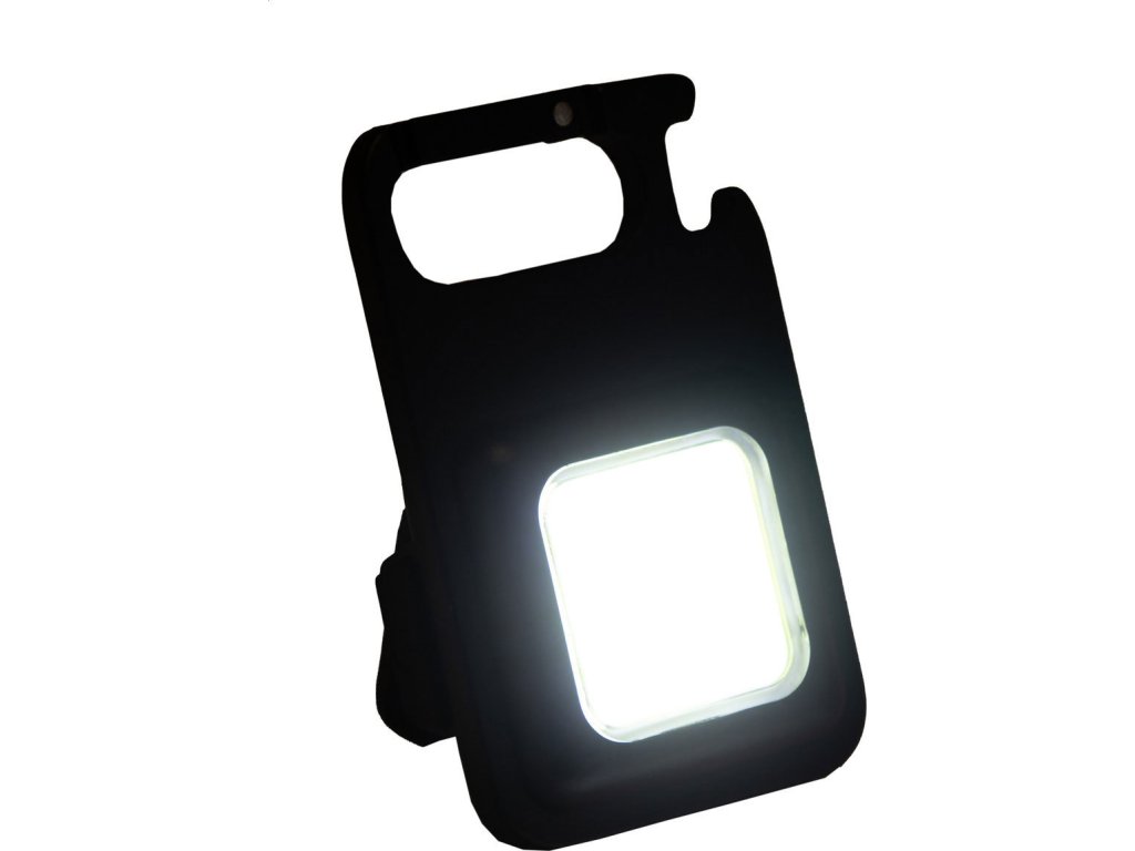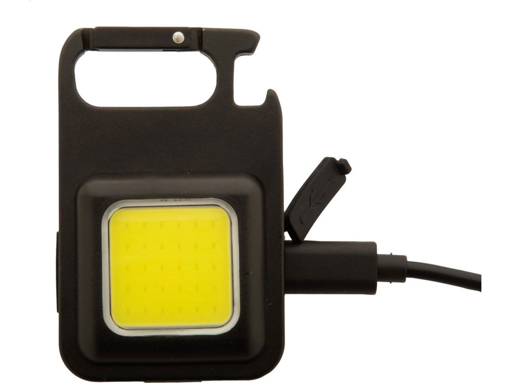 Multifunkční hliníková baterka s vysoce výkonným COB reflektorem a vestavěnou USB dobíjecí baterií (400 mAh). S karabinou, magnetem a otvírákem na láhve. S vysokým, nízkým a blikajícím světlem. Včetně USB nabíjecího kabelu.
