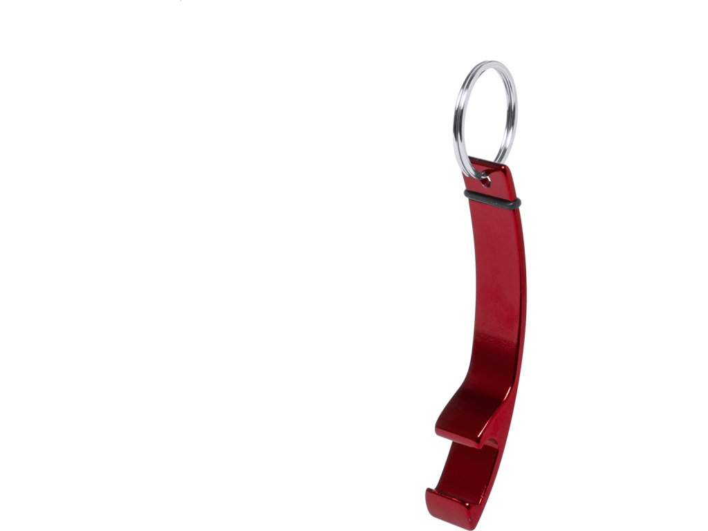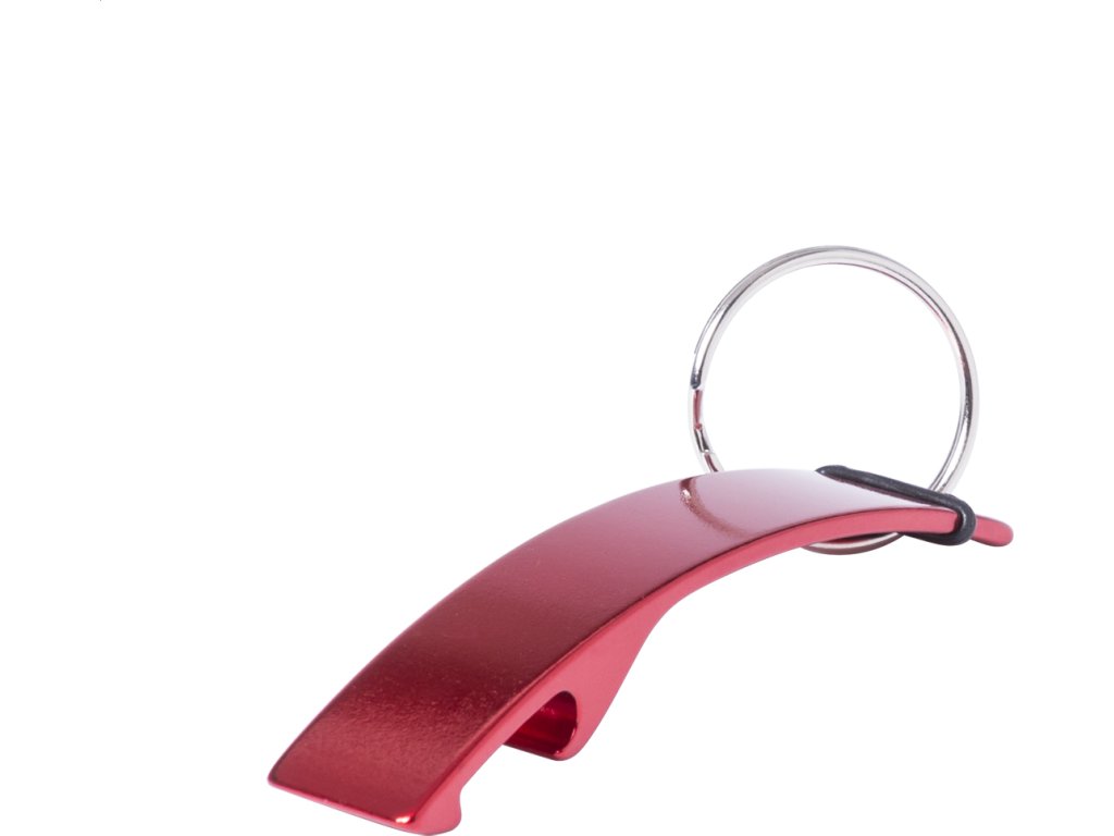 Hliníkový otvírák na lahve s přívěškem na klíče.