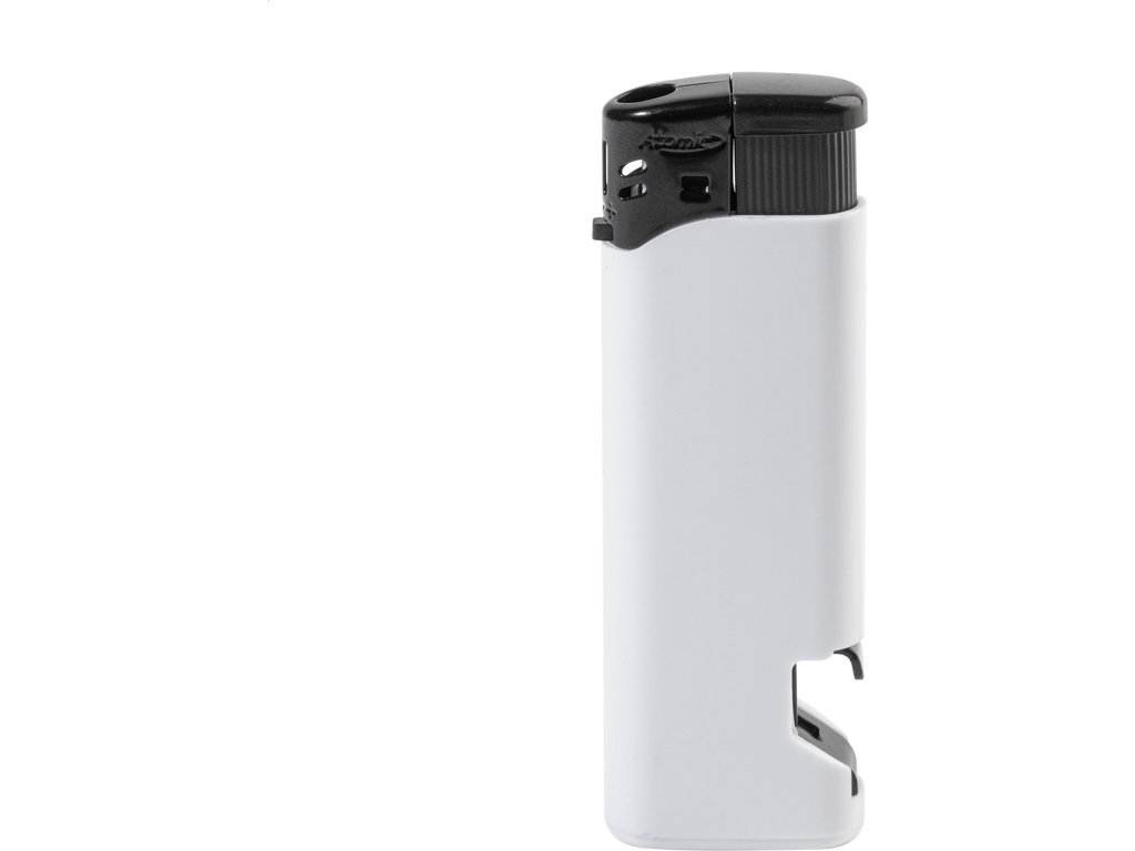 Plnitelný plastový piezoelektrický zapalovač s otvírákem. Dětská pojistka. Dodává se s přibližně 80% hladinou plynu. K dispozici pouze v plném exportním kartonovém množství (násobky 500 kusů)!