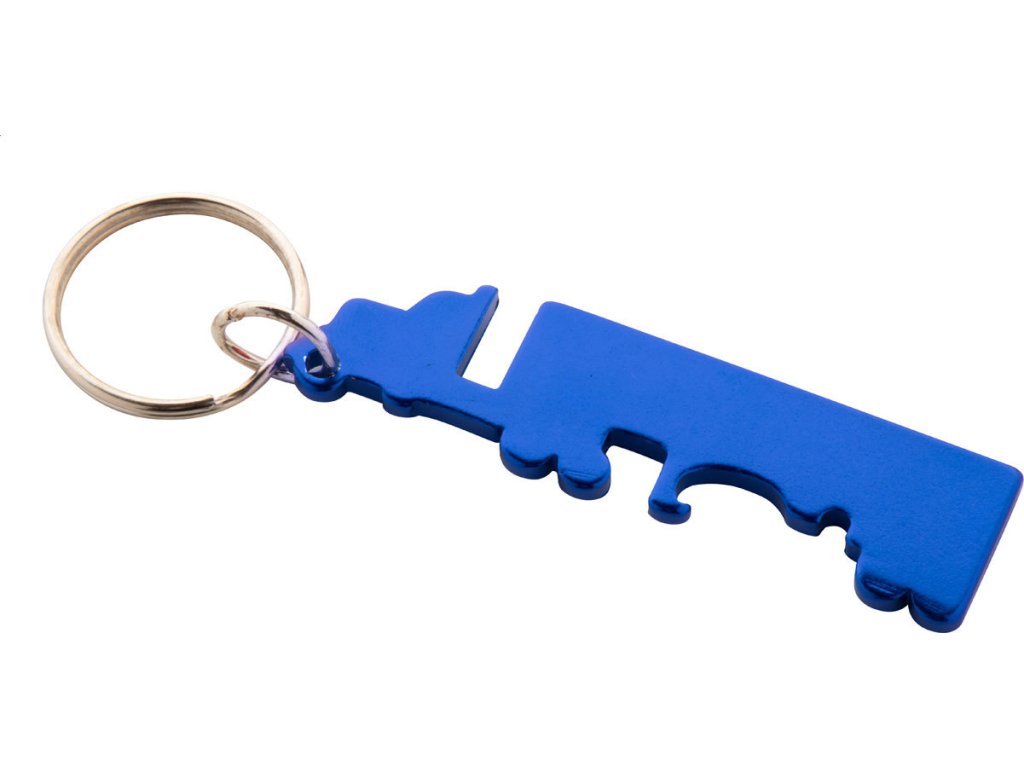 Hliníkový přívěšek na klíče ve tvaru kamionu s funkcí otvíráku na láhve.
