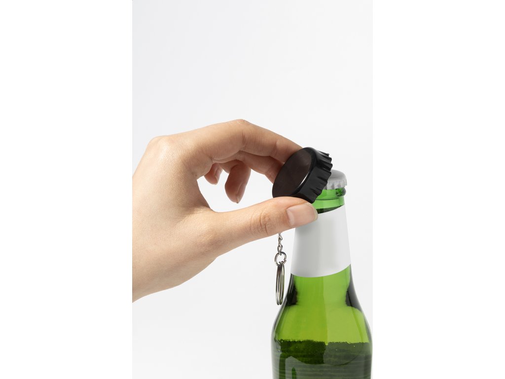 Přívěsek na klíče ve tvaru víčka z recyklovaného ABS plastu s otvírákem.