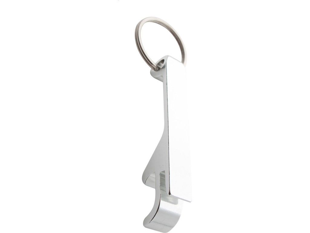 Hliníkový otvírák s kroužkem na klíče.