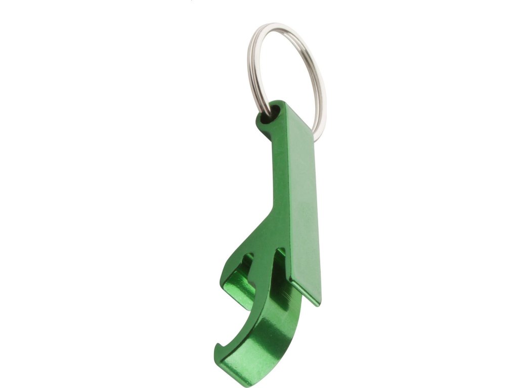 Hliníkový otvírák s kroužkem na klíče.