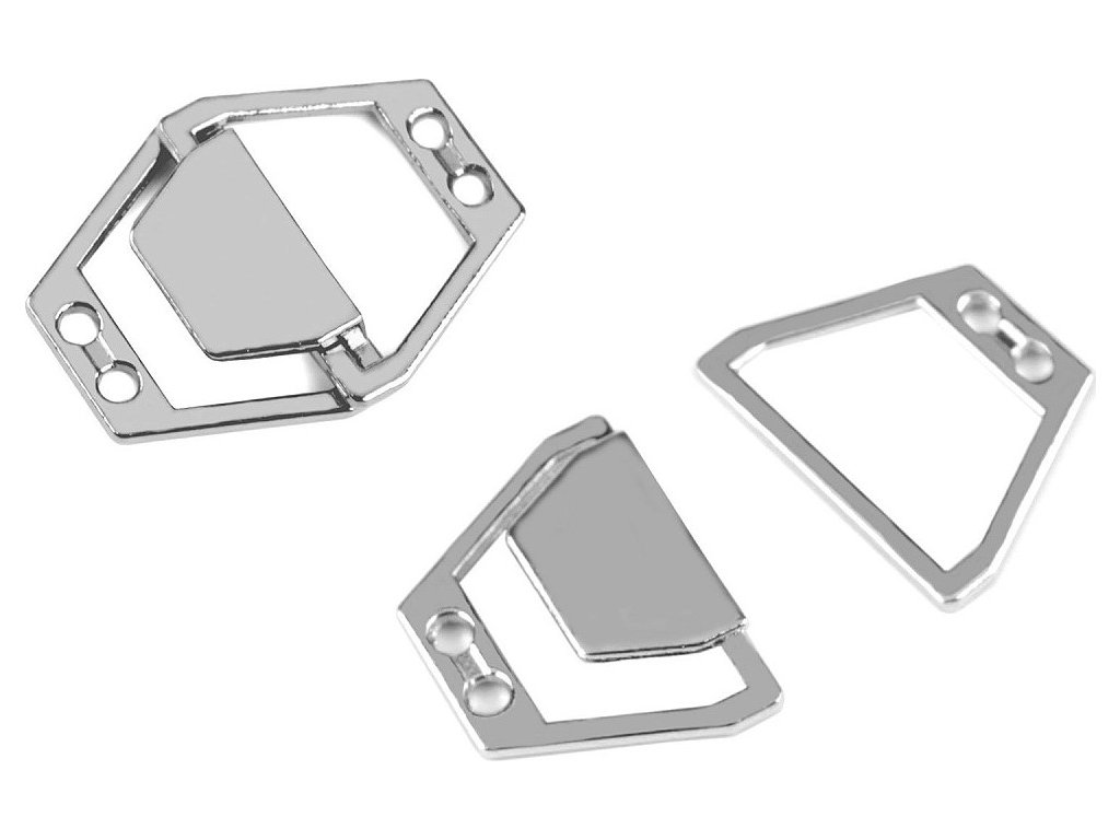 Minimalistické kovové zapínání se skládá ze dvou částí, které do sebe zaháknete. Vynikne na oděvech i doplňcích. K materiálu se přišívá. Otvory k přišití mají průměr 1,7 mm.