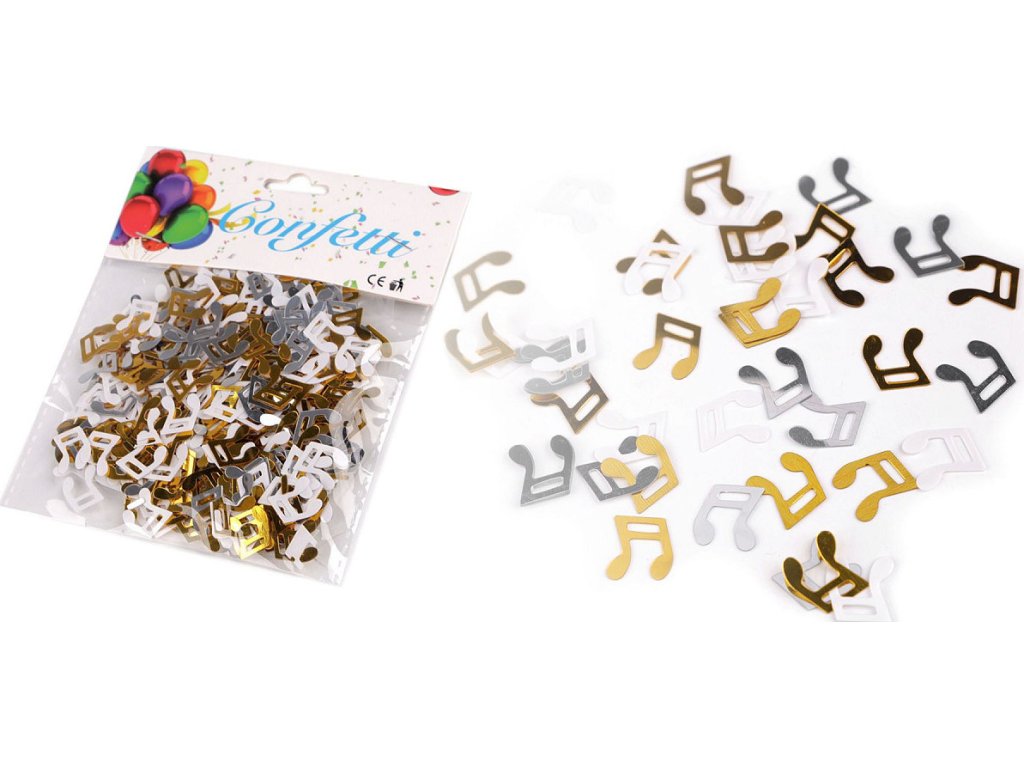 Lesklé konfety ve tvaru not jsou skvělým doplňkem na tematických oslavách, svatbách i večírcích. Můžete je volně poházet na slavnostní tabuli, ale také s nimi ozdobit dárkové balíčky či balónky. Využijete je i na scrapbooking.