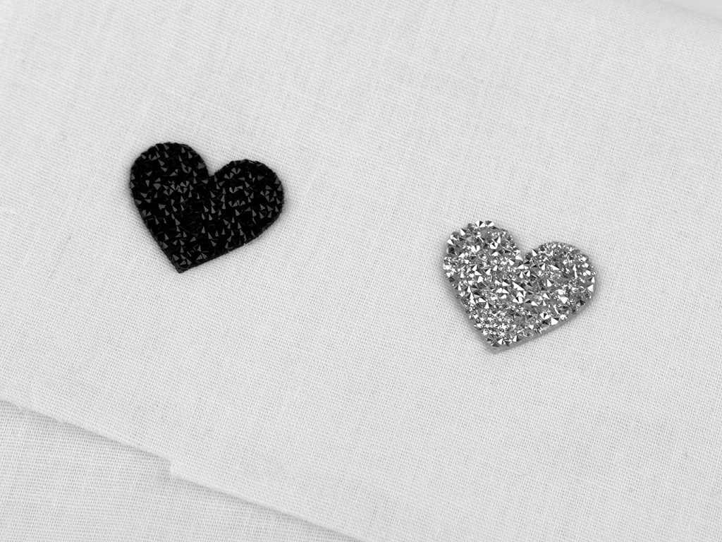Nažehlovačka srdce s broušenými kamínky okamžitě přidá lesk a eleganci vašemu oblečení. Ušetří plno práce při zdobení oděvů, snadno se aplikuje na různé typy textilu pomocí žehličky. Jejím základem je lepící vrstva, která po nažehlení pevně drží na oděvu. Pozor, nažehlováním při vysoké teplotě se jemnější látka může spálit!