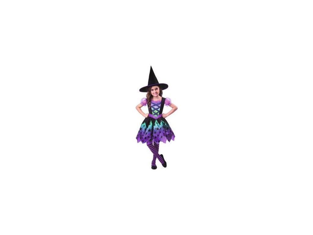 Obsahuje krásné šaty s veselými detaily a čarodějnický klobouk,ideální na Halloween, karneval nebo tematickou párty.