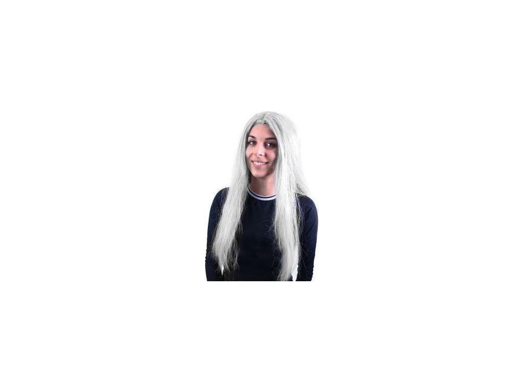 Karnevalová paruka v motivu čarodějnice. Paruka má dlouhé šedé vlasy. Perfektní doplněk ke kostýmu!
