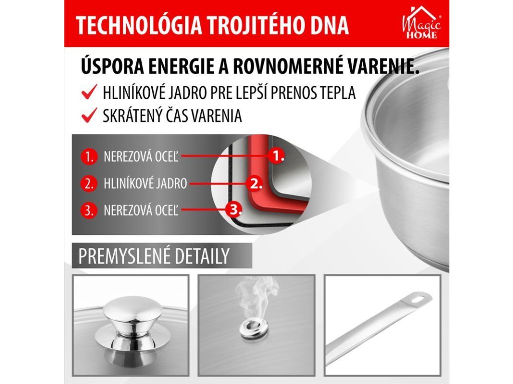 - Obsahuje hliníkové jádro pro rovnoměrné rozložení tepla