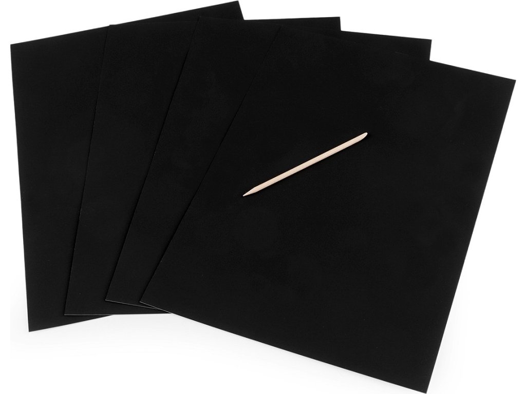 Škrabací papíry A4 prázdné duhové, sada 4 ks a škrabátko