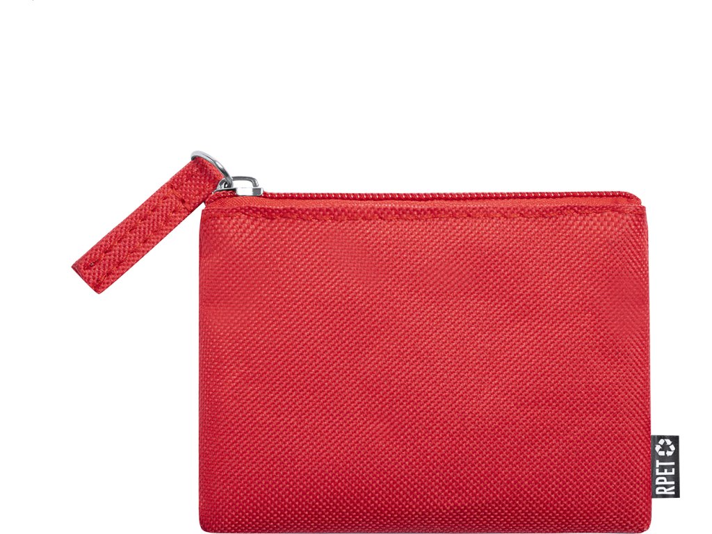 Peněženka na zip ze 600D RPET polyesteru, s etiketou s označením RPET.