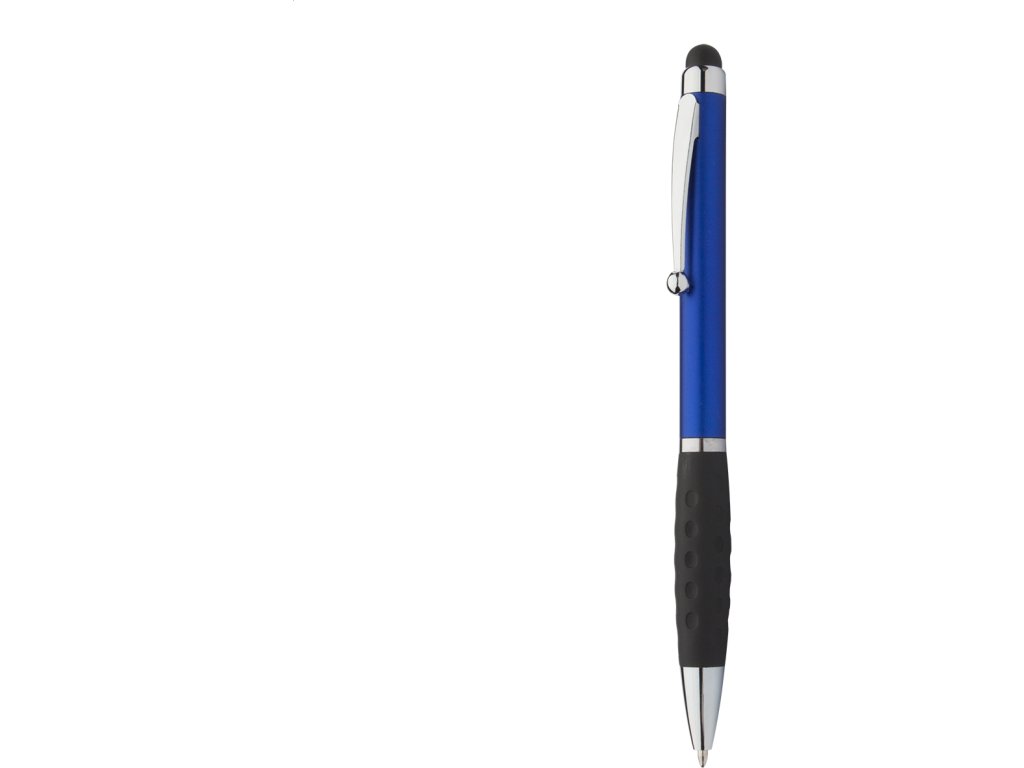 Plastové kuličkové a dotykové pero na displeje a gumovým gripem. S modrou náplní.