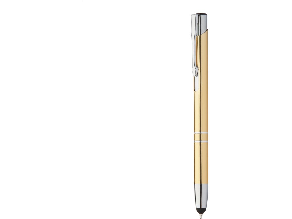 Hliníkové kuličkové pero s dotykovým koncem a modrou náplní.