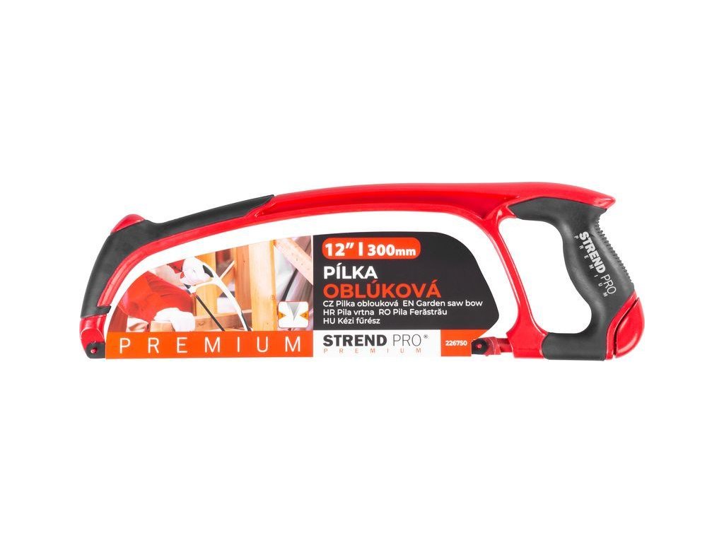 Oblouková pilka Strend Pro Premium v prémiové kvalitě s pevnou 300 mm čepelí z uhlíkové oceli , která umožňuje hladký řez a zabraňuje zasekávání. Ergonomická rukojeť je potažena TPR. Použití: dřevo, plast. Celková délka pilky je 44 cm.