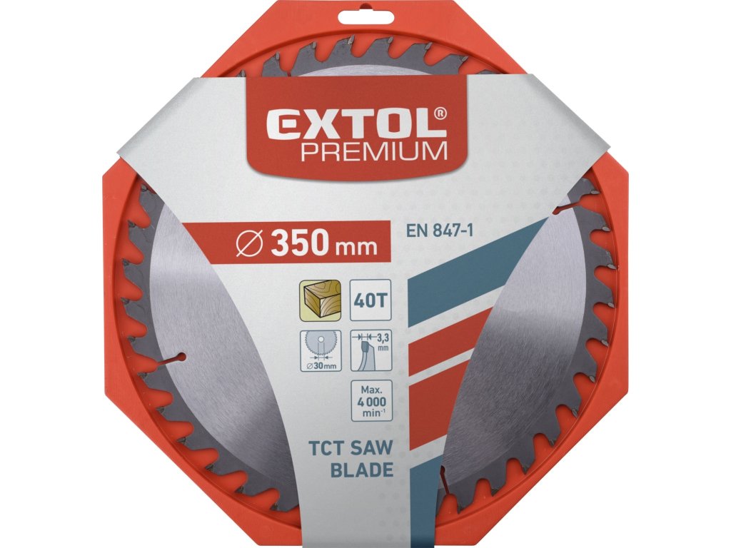 Kotouč pilový s SK plátky, 350x2,5x30mm, 40T, šířka SK plátků 3,5mm, SK, EXTOL PREMIUM