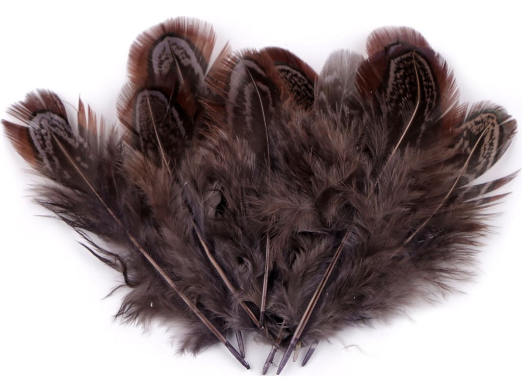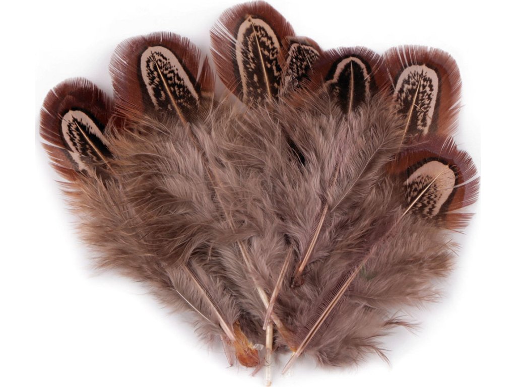 Bažantí pírko má v dolní polovině jemné chmýří, horní polovinu tvoří plochá část, kterou zdobí zajímavý design. Použití: Peří využijete k dekoračním účelům. Je vhodné k výrobě fascinátorů, zdobení klobouků a karnevalových či divadelních kostýmů. Vynikne také naaranžované ve vázaných kyticích, ikebanách nebo věncích.
