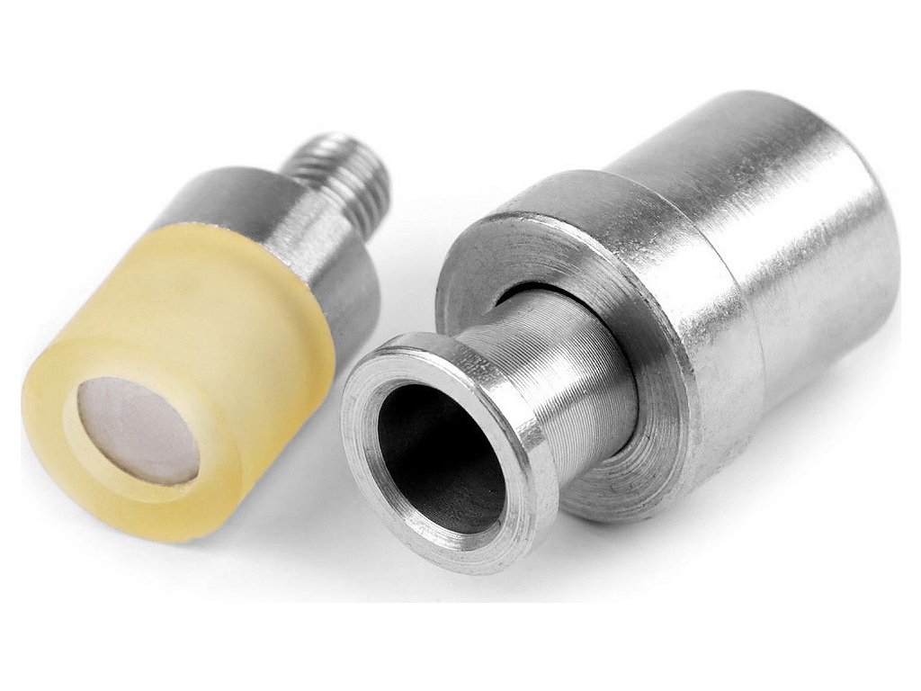 Piston tvoří nedílnou součást lisu. S jeho pomocí nýtujeme duté nýty oboustranné Ø10 mm. Piston se skládá ze dvou částí. Větší část pistonu, do které se vkládá nýt, umístíme v dolní části lisu. Druhou část zašroubujeme do lisu a vložíme vhodný komponent k nýtování. Vaše kabelky, boty i oblečení se během chvilky změní v originální kousky. Průměr spodní části, která se vkládá do lisu je 18,9 mm.