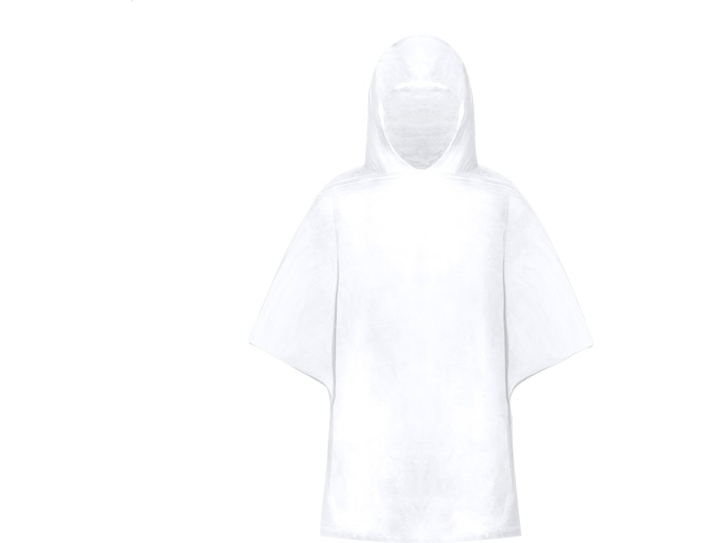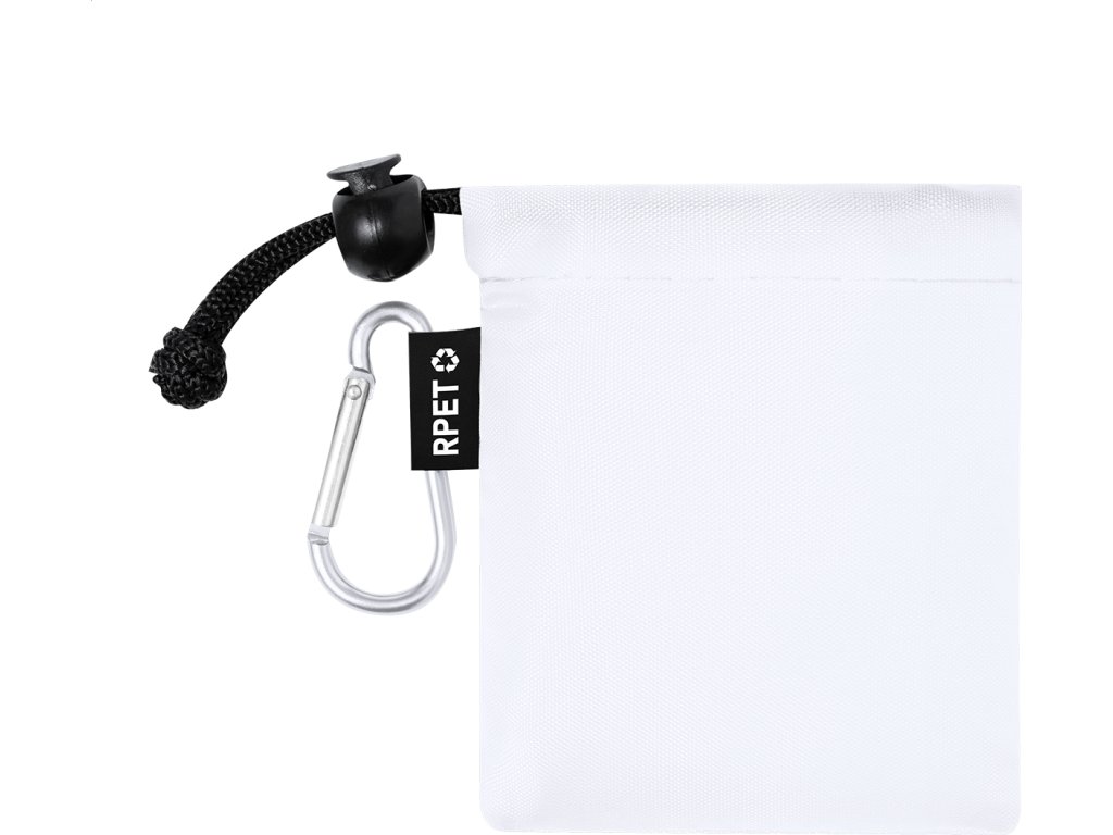 Průhledné LDPE pláštěnkové pončo pro děti. V RPET polyesterovém pouzdru s výrazným štítkem RPET a hliníkovou karabinou.