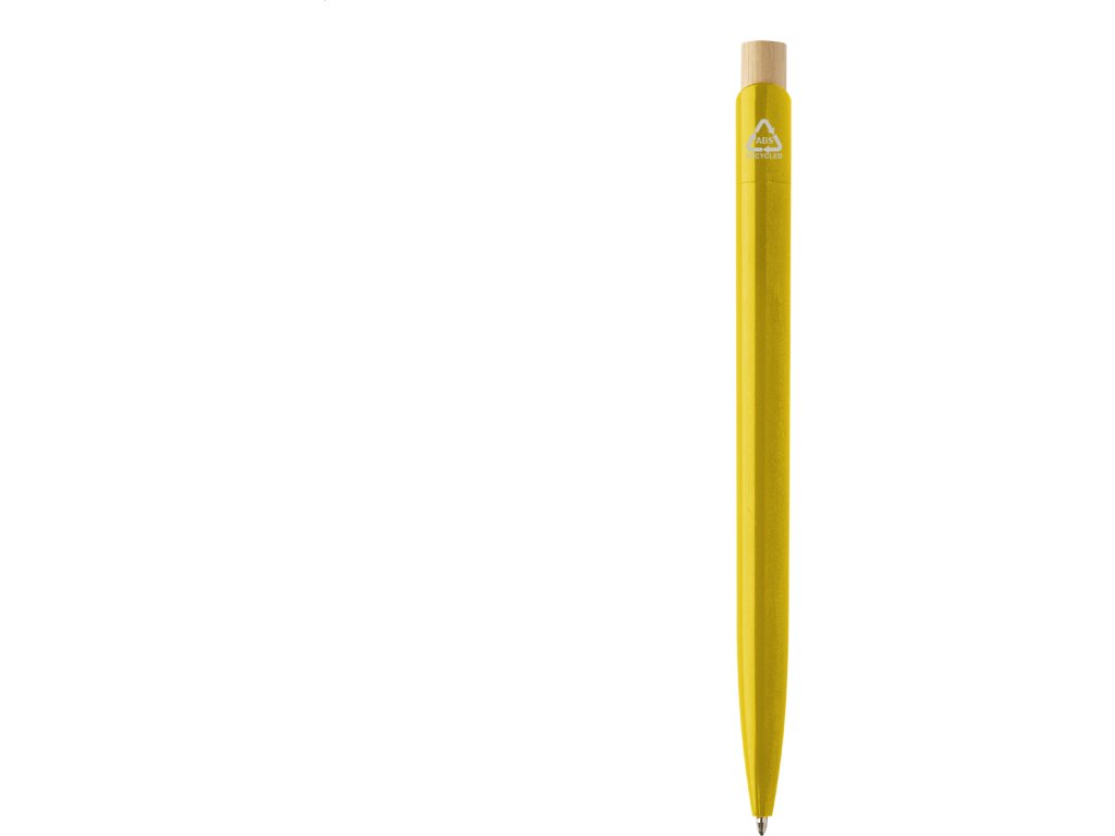 Kuličkové pero z recyklovaného ABS plastu s bambusovým tlačítkem. S modrou náplní.