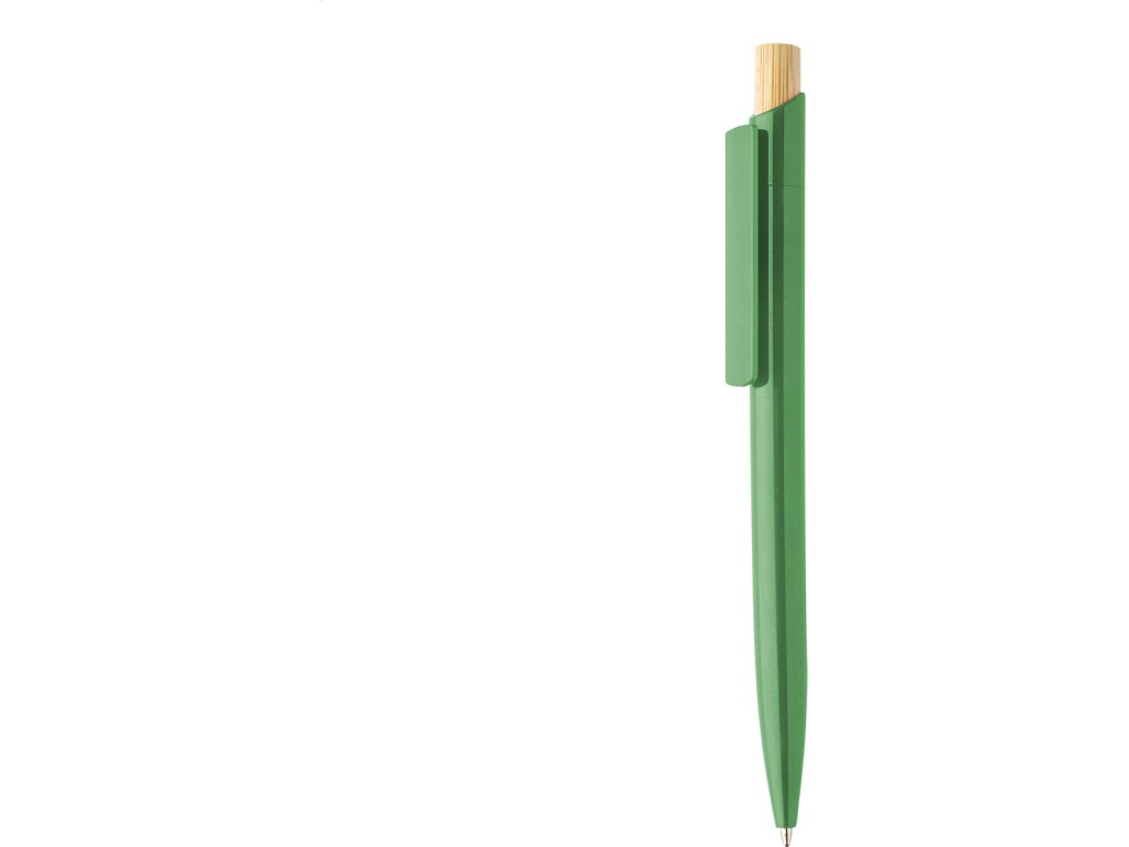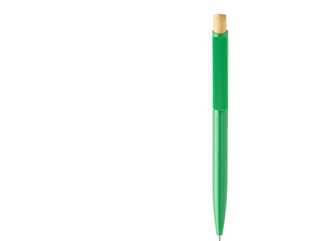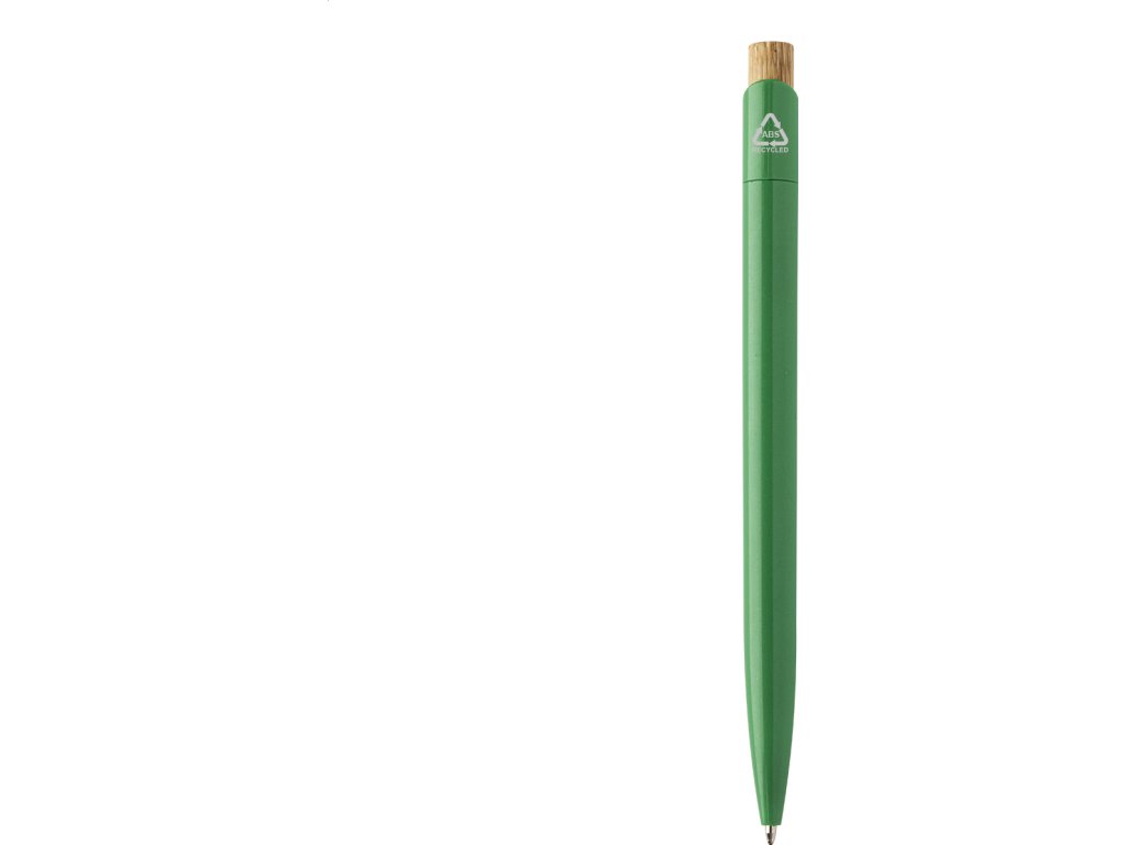 Kuličkové pero z recyklovaného ABS plastu s bambusovým tlačítkem. S modrou náplní.