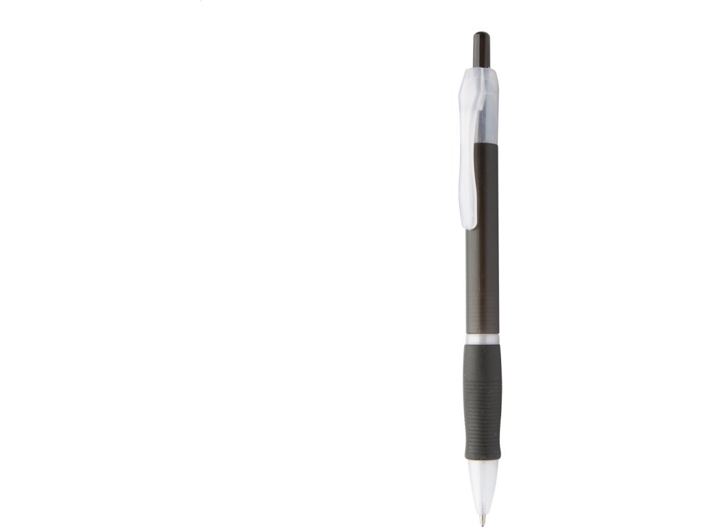 Plastové kuličkové pero s pogumovaným gripem a s modrou náplní.