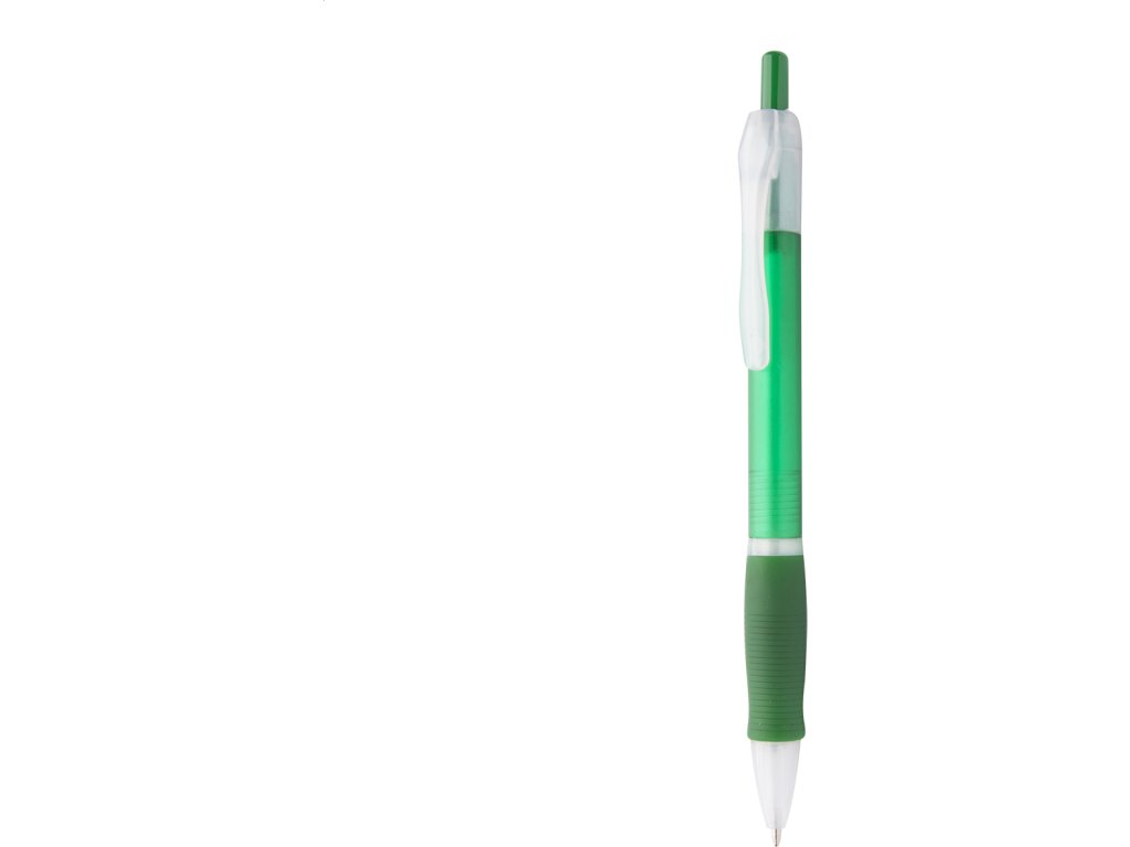 Plastové kuličkové pero s pogumovaným gripem a s modrou náplní.