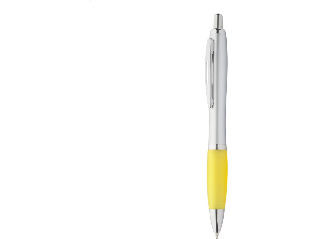 Kuličkové pero s barevným gumovým gripem a s modrou náplní.