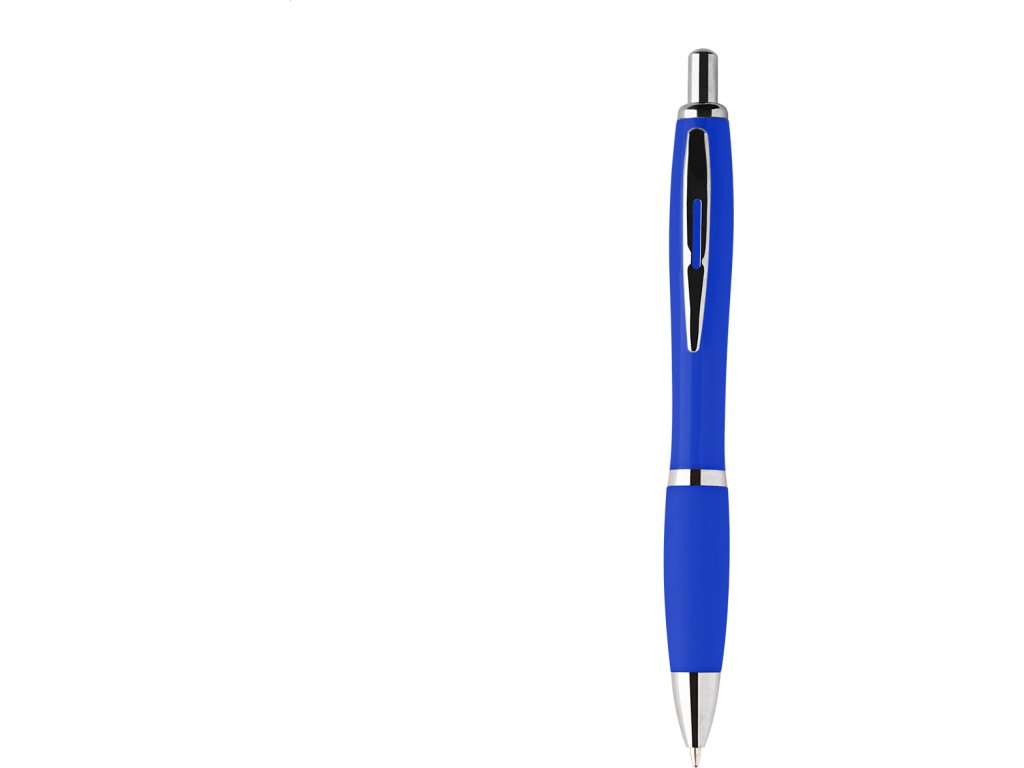 Kuličkové pero z recyklovaného ABS plastu s úchopem v odpovídající barvě a chromovanými částmi. S modrou náplní.
