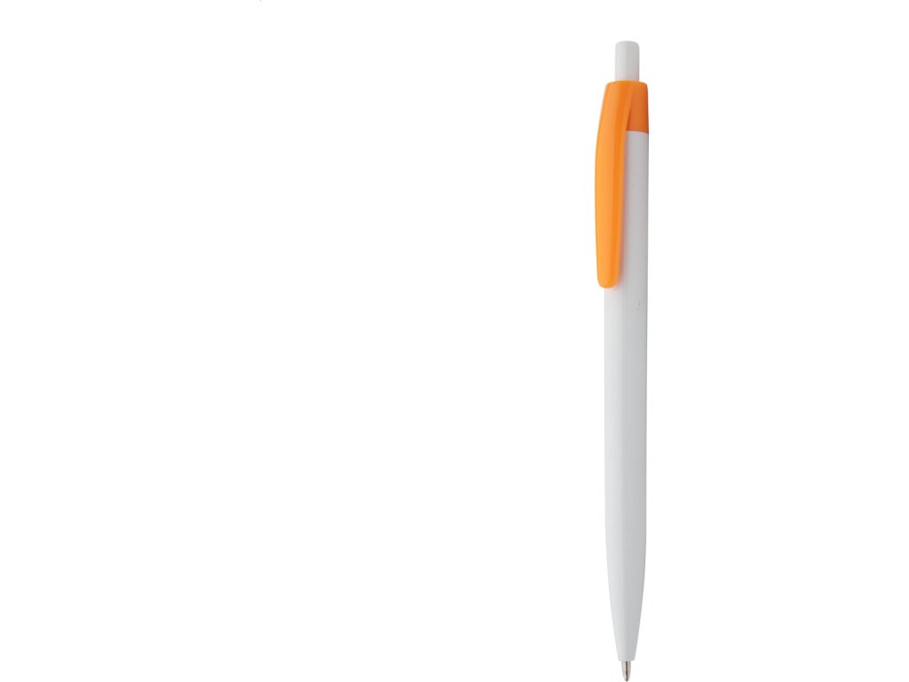 Plastové kuličkové pero s bílým tělem a barevným klipem, s modrou náplní.