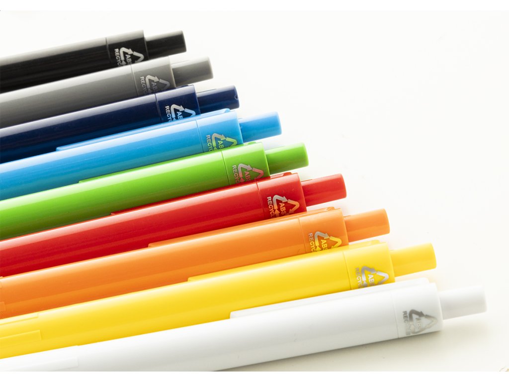 Kuličkové pero z recyklovaného ABS plastu s modrou náplní.