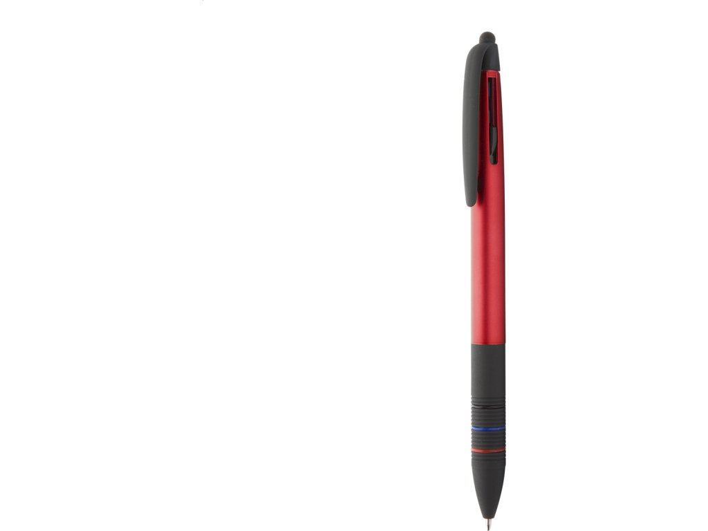 Plastové kuličkové a dotykové pero s pogumovaným úchopem a tělem s matnou metalickou úpravou. Tři barevné náplně: modrá, černá a červená.