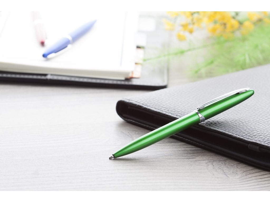 Plastové barevné kuličkové pero. Dodává se s modrou náplní.