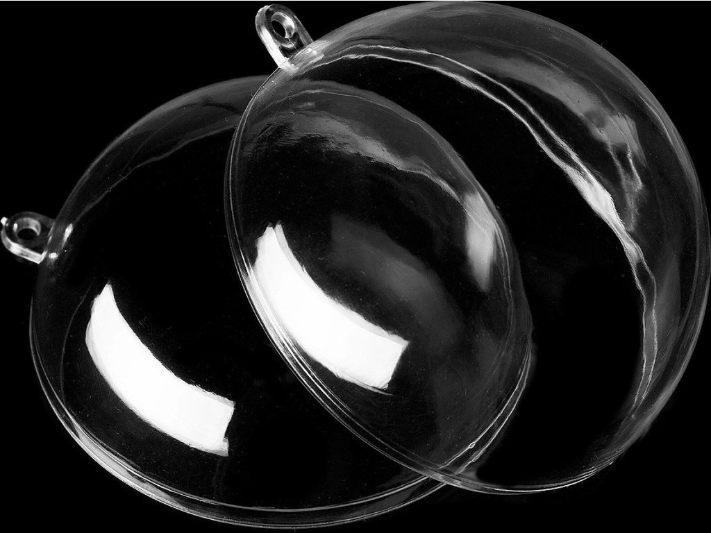 Velká plastová koule je průhledná a se skládá ze dvou částí, které se spojí. Pomocí očka ji můžete pověsit jako dekoraci. Jedná se o polotovar, který je určen k dozdobení. Můžete ji obháčkovat, dekorovat metodou quilling, ubrouskovou technikou, dozdobit glitry atd. Poslouží vám i k originálnímu zabalení dárků. Jelikož se jedná o plast a dodavatel nebalí části odděleně, mohou se na povrchu vyskytovat drobné škrábance.