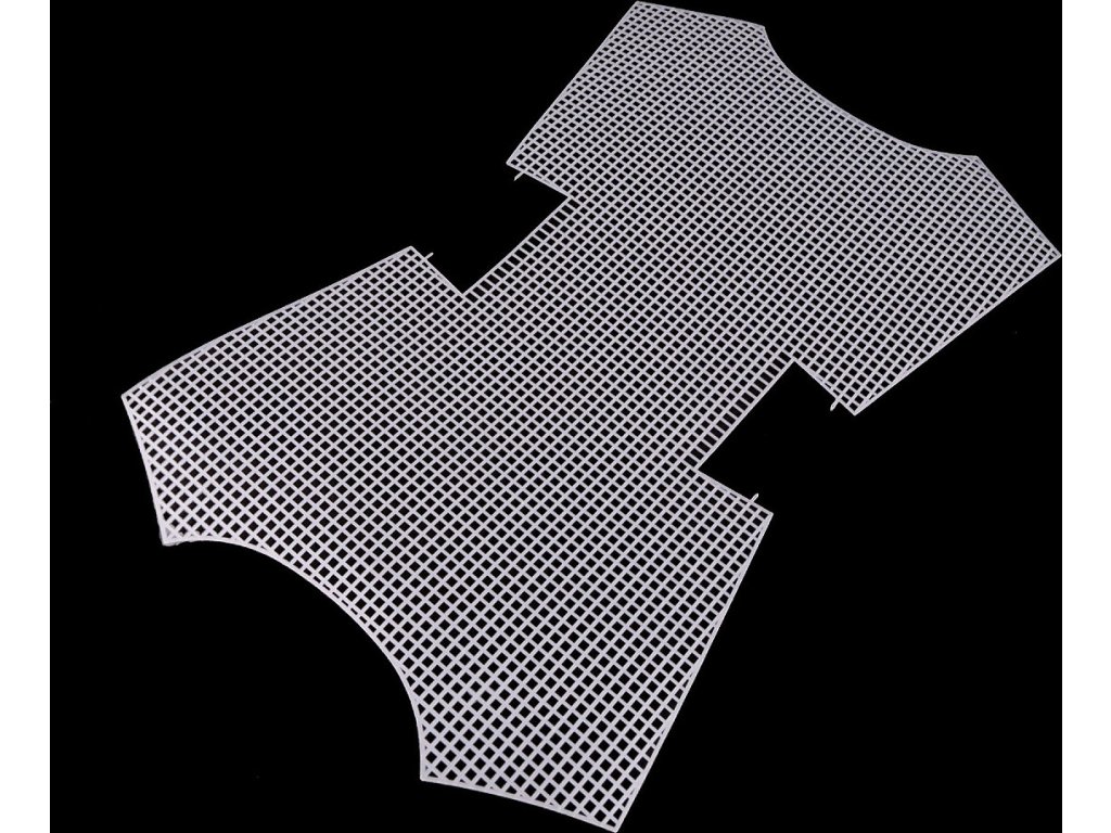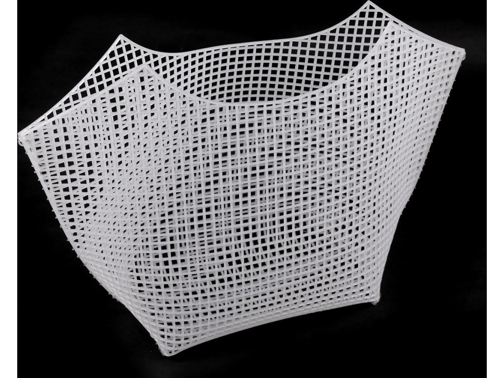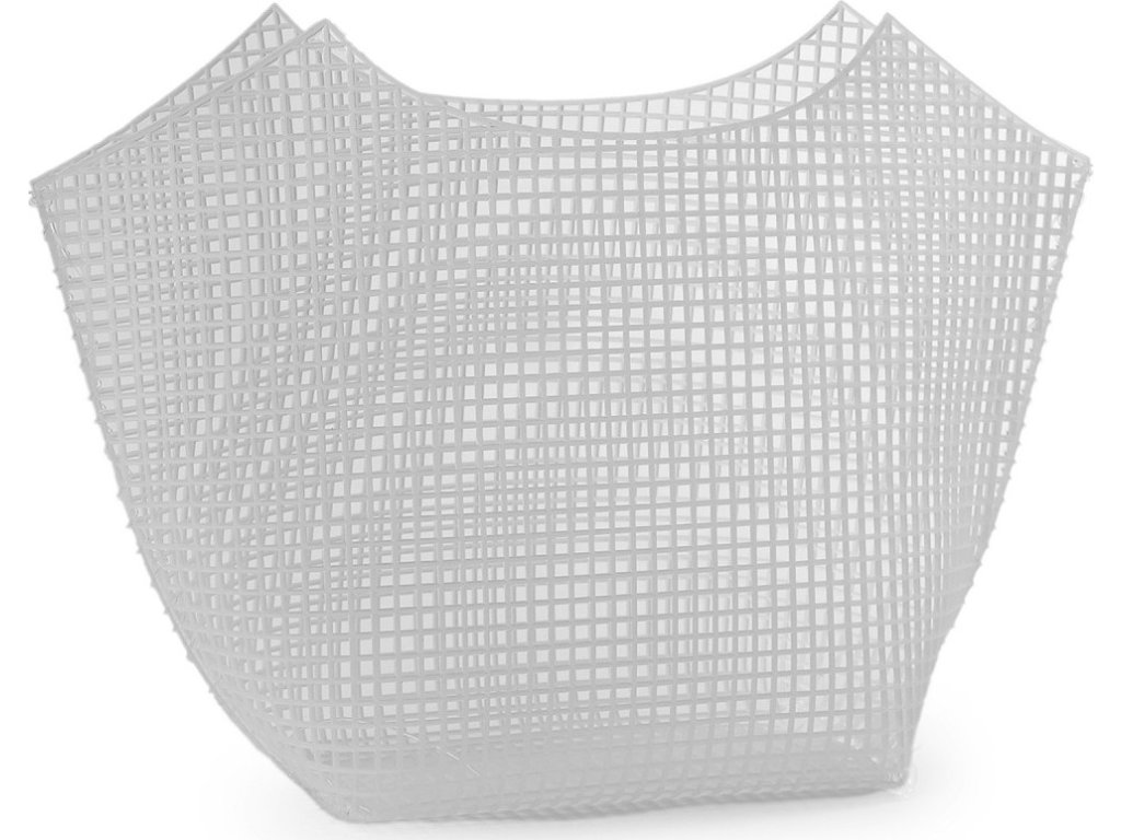 Plastová kanava je polotovar, ze kterého si můžete vyrobit kabelku o rozměrech cca 30 x 21 x 9 cm. Na výrobu je vhodná silnější příze, která je určená k pletení či háčkování. Použít můžete i šňůru či odolnější stuhu (např. rypsovou). Kanavu po celém povrchu vyšijete přízí a sešijete po stranách. Otvor jednoho čtverečku má rozměry 4 x 4 mm.