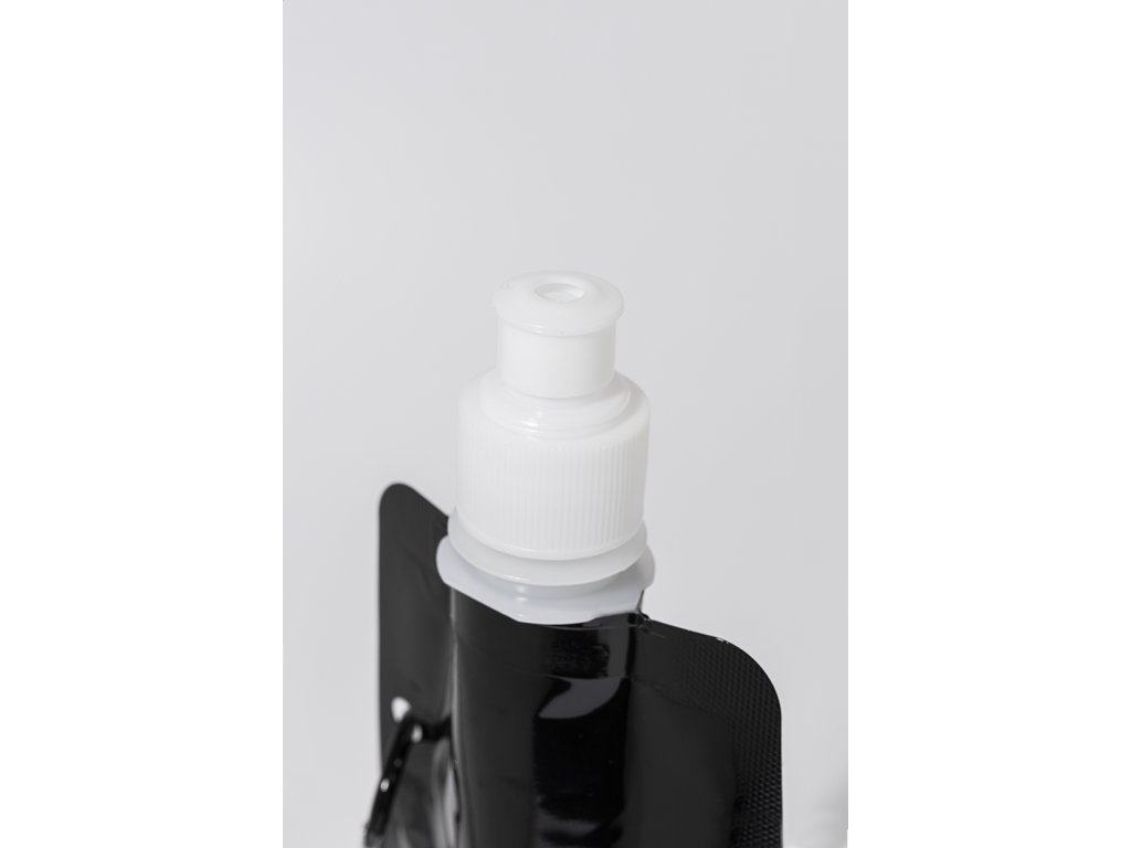 Skládací sportovní láhev z RPET s víčkem na pití a hliníkovou karabinou, 500 ml. Bez BPA. Nevhodná pro sycené nápoje.