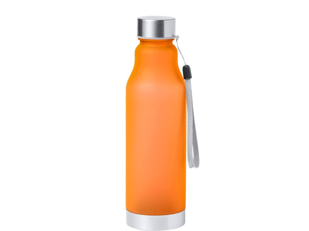 Láhev RPET s popruhem, nerezovým uzávěrem a dnem, 600 ml. Bez BPA. Nevhodné pro sycené nápoje.