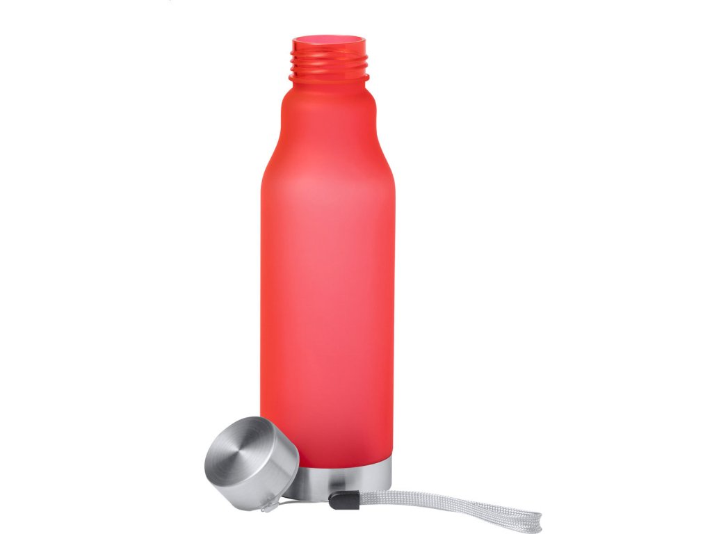 Láhev RPET s popruhem, nerezovým uzávěrem a dnem, 600 ml. Bez BPA. Nevhodné pro sycené nápoje.