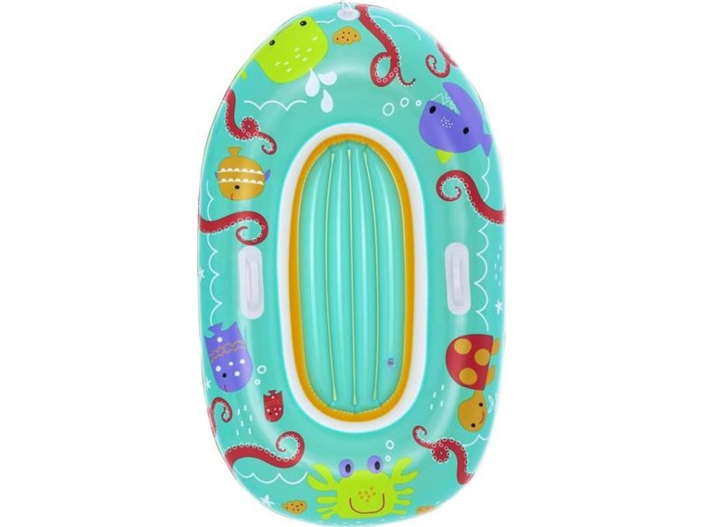 Dětský nafukovací člun Bestway® Happy Crustacean je vhodný pro děti od 3 – 6 let. Nafukovací dno zajišťuje větší pohodlí. Člun je také vybaven praktickými držadly umístěnými na bocích. Vaše dítě si užije slunečné dny plné zábavy na vodě. Rozměry: 119x79 cm.