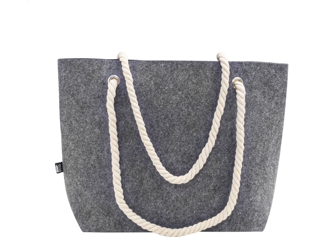 Plážová nebo nákupní taška z RPET s bavlněnými šňůrkami a spodním klínkem. S výrazným štítkem RPET.