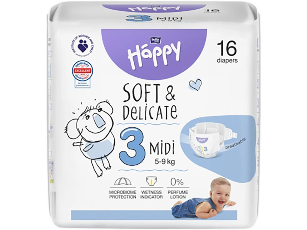 Bella Happy dětské pleny 3 MIDI 5-9 kg 16 ks