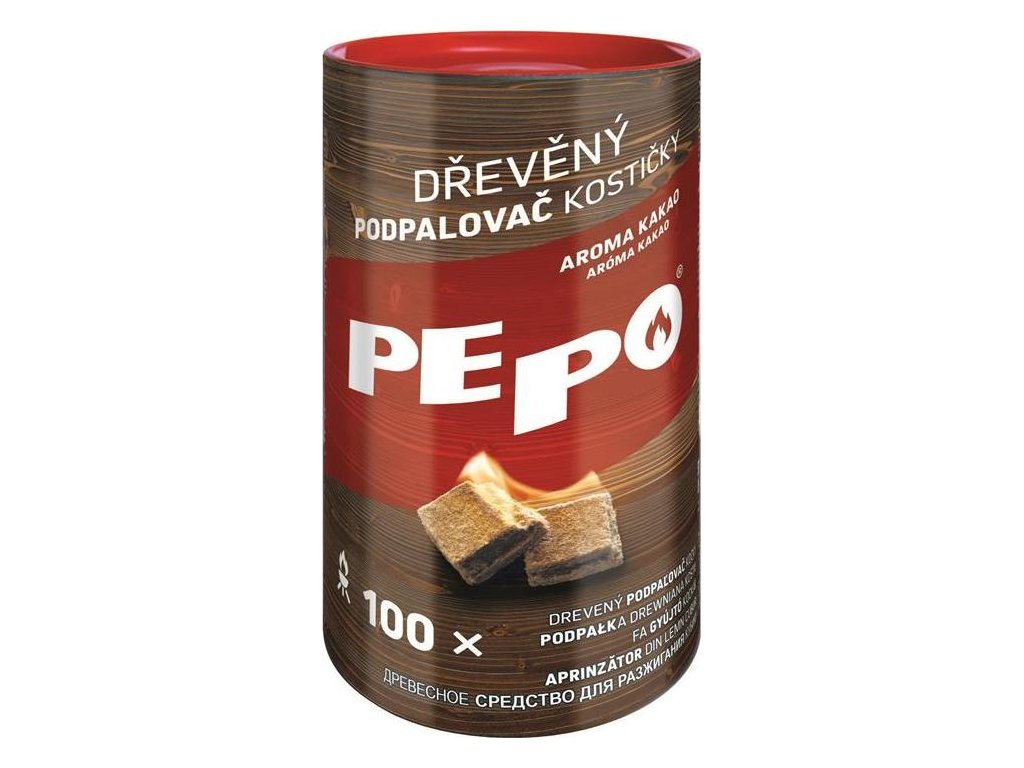 PE-PO dřevěný podpalovač kostičky, obsahuje pouze lisované dřevěné piliny a parafín. Zajímavá alternativa ke klasickým pevným či tekutým podpalovačům.