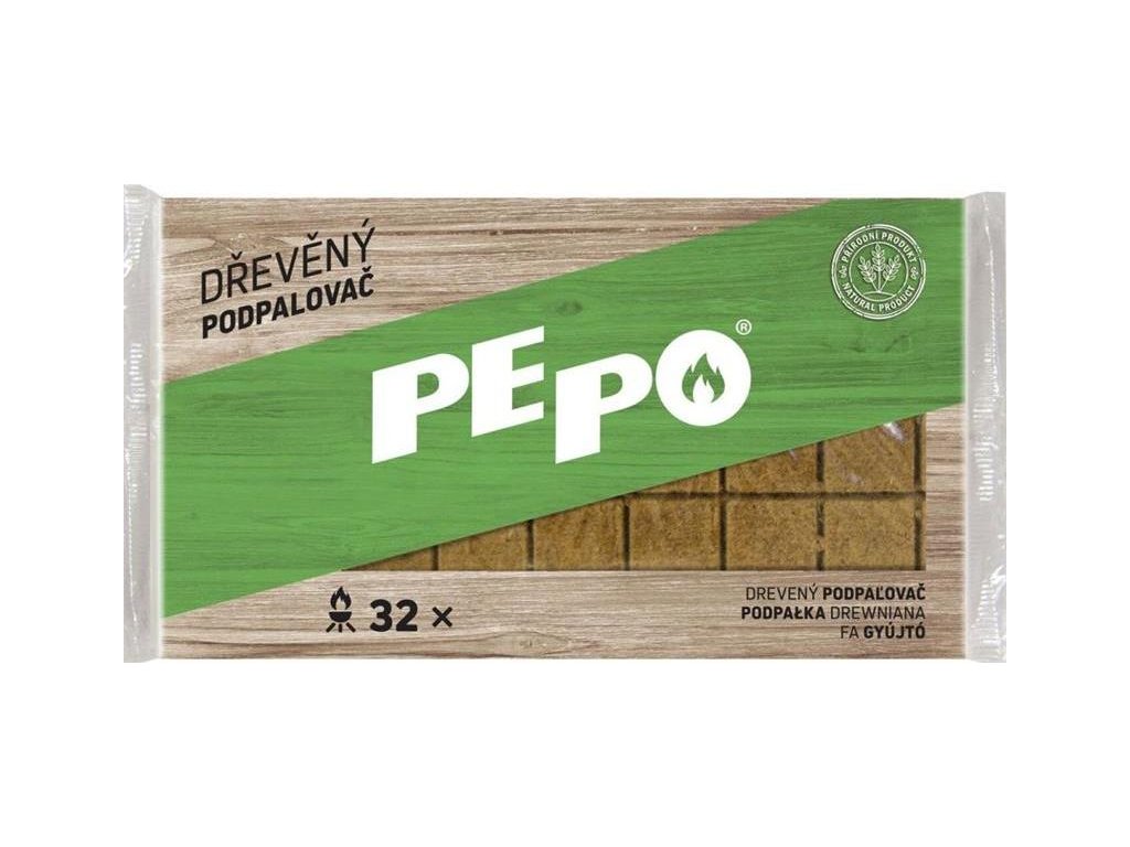 PE-PO dřevěný podpalovač, obsahuje pouze lisované dřevěné piliny a parafín. Zajímavá alternativa ke klasickým pevným či tekutým podpalovačům.