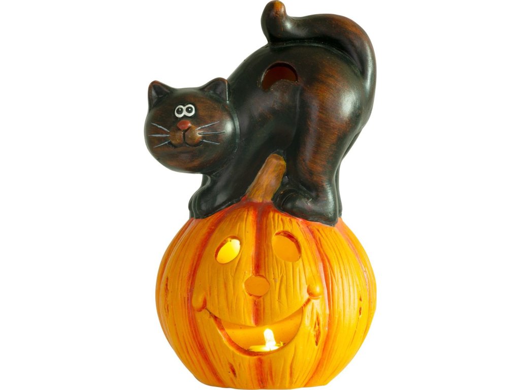 Dekorace MagicHome Nature, Dýně LED, kočka, keramika, 22 cm