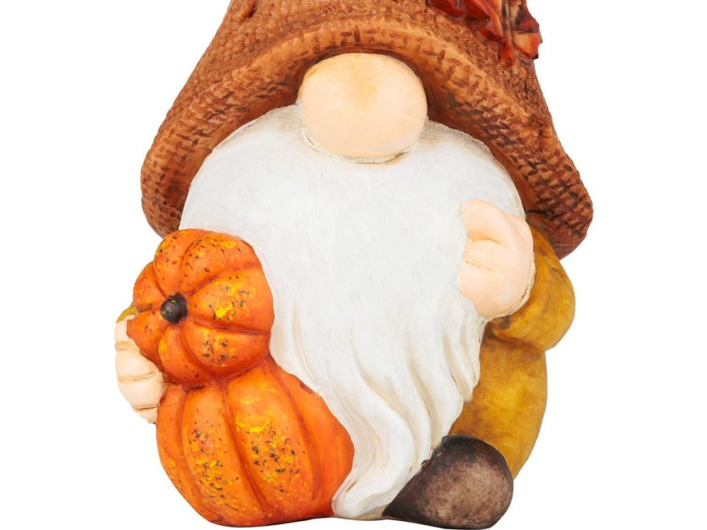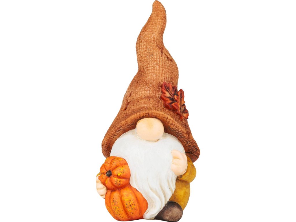 Dekorace MagicHome Nature, Trpaslík s dýněmi, polyresin, 11x9x23 cm