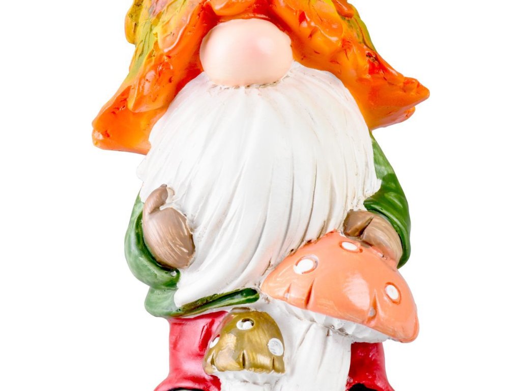 Roztomilý trpaslík s houbami zkrášlí Váš dům a zahradu. Dekorace je vyrobena z keramiky a má rozměry 10x8x19,3 cm.