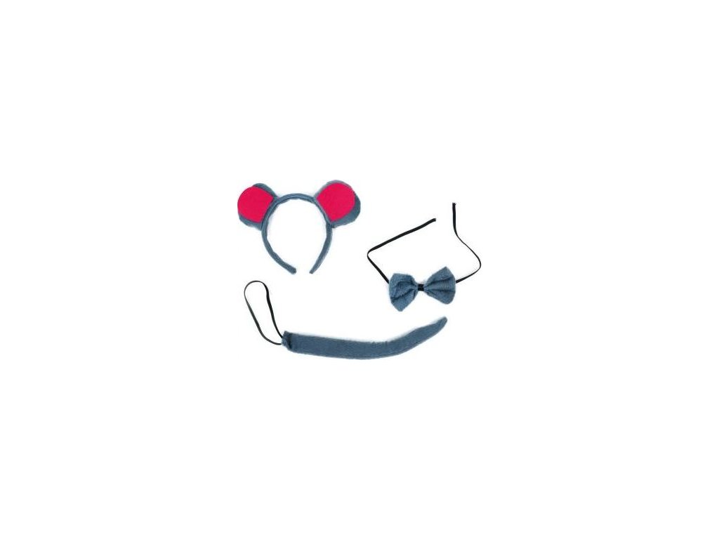 Karnevalové plyšové doplňky v myším stylu! Exkluzivní sada obsahuje ocas na gumičku, motýlka a čelenku s ušima.