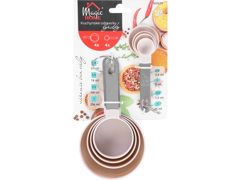 Odmerka MagicHome, lyžicové a hrnčekové, kuchynská, sada 8 ks, 2,5 ml - 236 ml